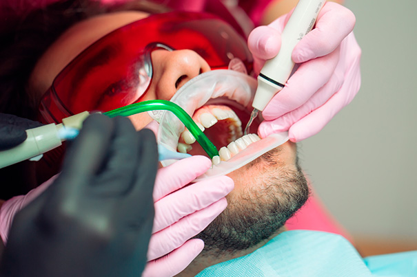 Удаление отложений — основной этап, во время которого врач последовательно удаляет все зубные камни с помощью выбранного метода.