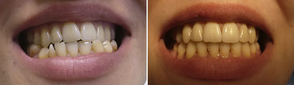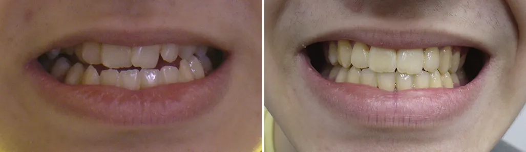 В 21 год обратилась с жалобами на кривостоящие зубы и выступающую нижнюю челюсть. Лечение заняло 2,5 года, велось на съёмной и несъёмной аппаратуре, с удалением 2 нижних премоляров.